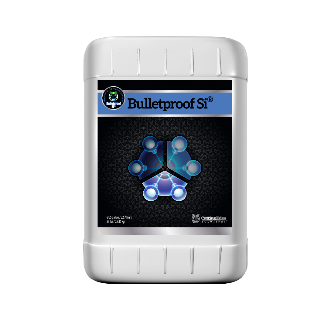 Bulletproof Si® is a powerful 5% silica supplement that strengthens plants, boosts resistance to stress, and supports robust growth in all fertigation systems, except during the final three weeks of flowering.