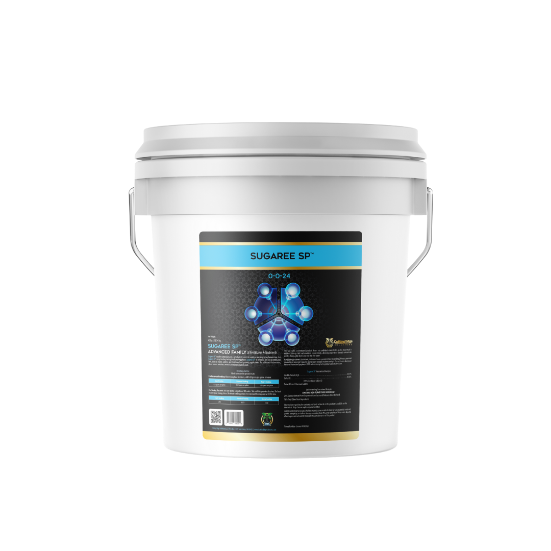 Sugaree SP™ 0-0-24 is a potassium- and sulfur-rich soluble powder that enhances floral development, supports beneficial microbes, and amplifies sweeter, berry flavor profiles in hydroponic and soil systems.